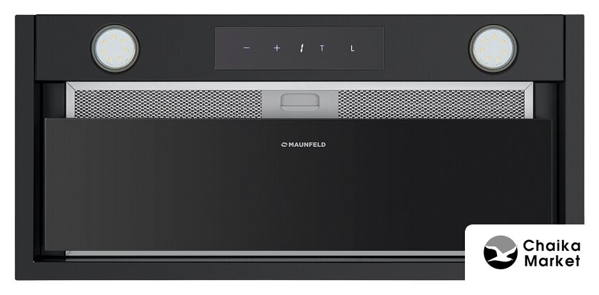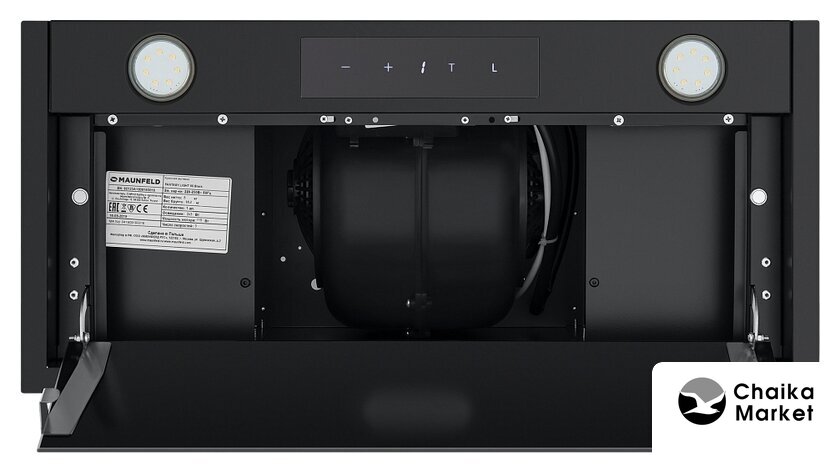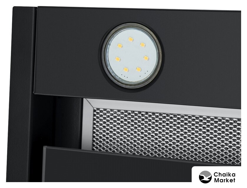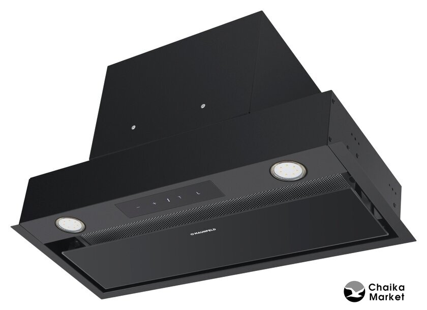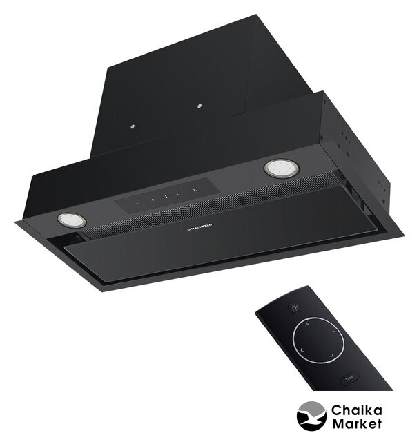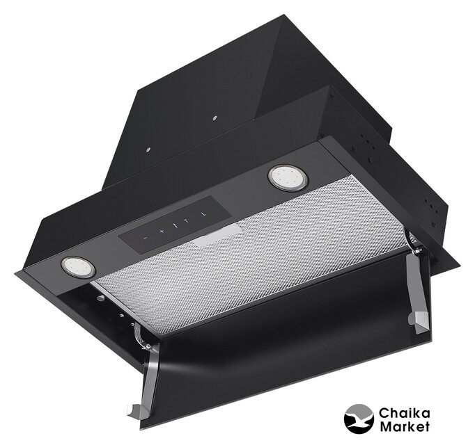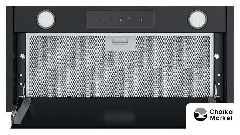 конструкция скрытая, монтаж для встраивания, ширина 59.6 см, управление сенсорное/жестами, производительность мотора 1260 м³/ч, цвет черный