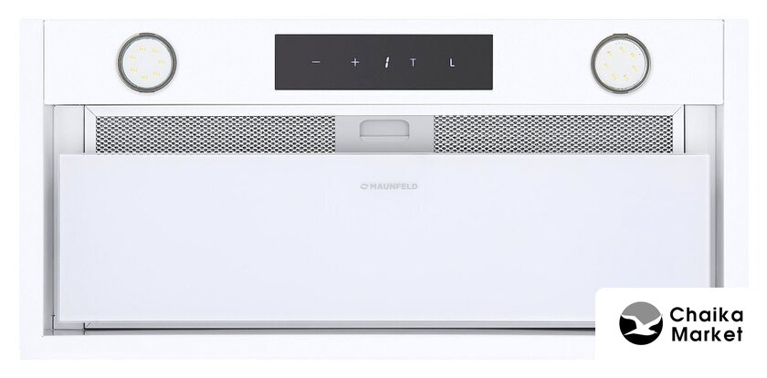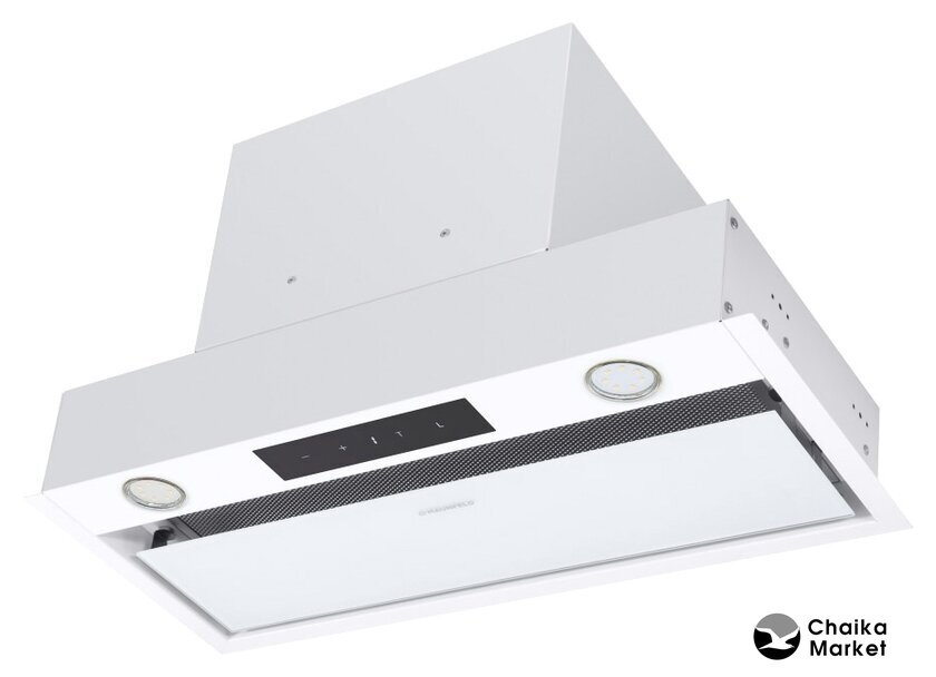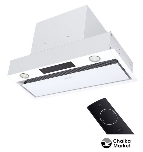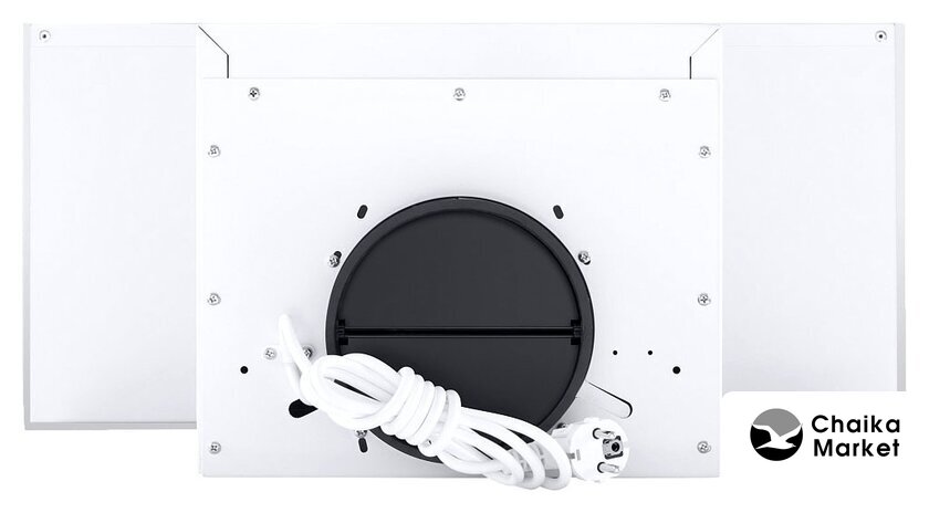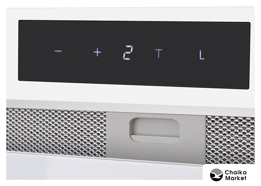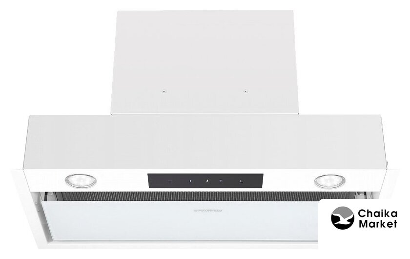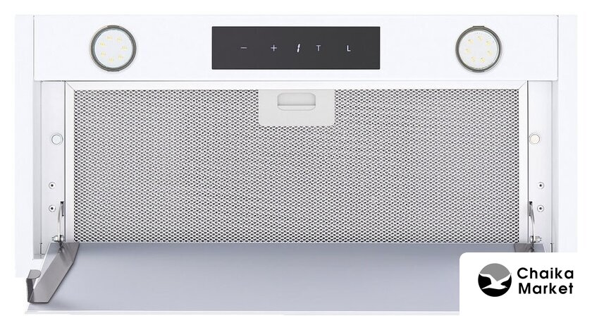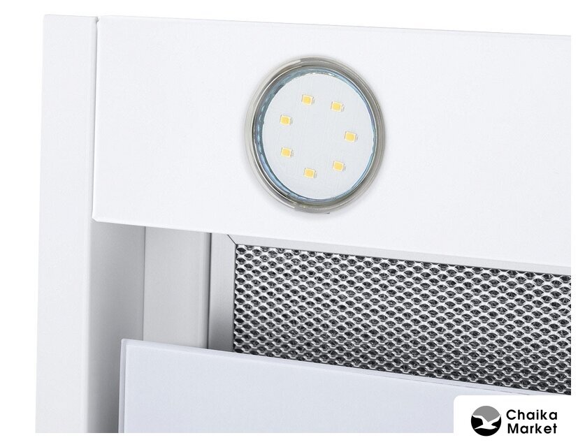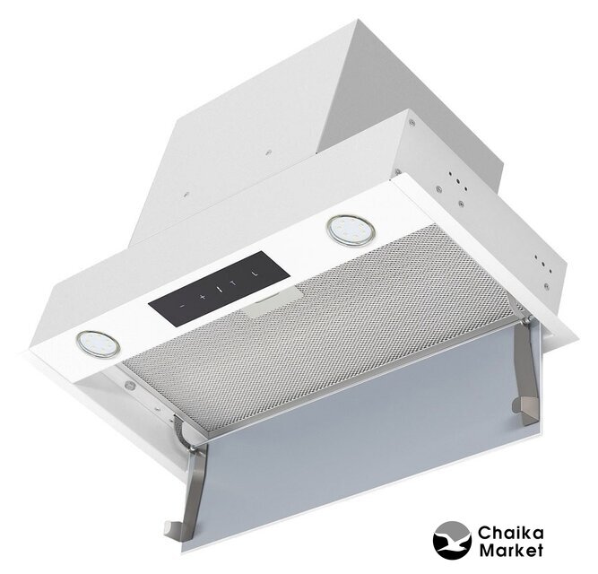 конструкция наклонная, монтаж настенный, ширина 60 см, управление сенсорное, производительность мотора 850 м³/ч, цвет белый