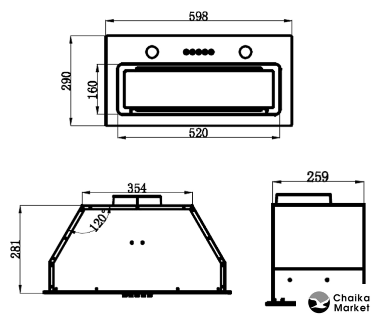 конструкция наклонная, монтаж настенный, управление электронное/кнопочное, производительность мотора 550 м³/ч, ширина 60 см