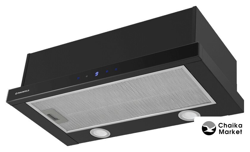 конструкция телескопическая, монтаж для встраивания, ширина 60 см, управление механическое/кнопочное, производительность мотора 1000 м³/ч, цвет черный