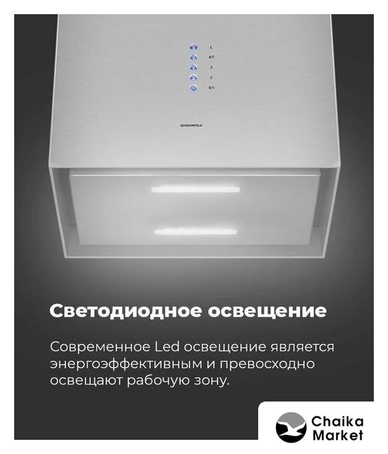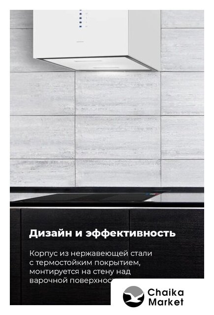 конструкция Т-образная, монтаж настенный, управление электронное/сенсорное, производительность мотора 600 м³/ч, ширина 89.8 см