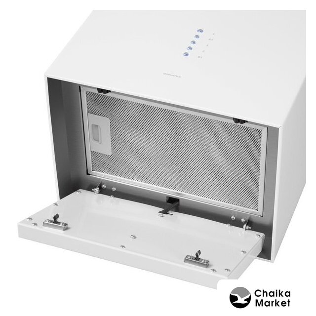 конструкция скрытая, монтаж для встраивания, ширина 89.7 см, управление сенсорное, производительность мотора 1050 м³/ч, цвет белый