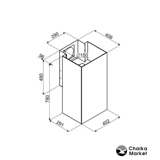 конструкция коробчатая, монтаж настенный, управление кнопочное, производительность мотора 1200 м³/ч, ширина 43 см