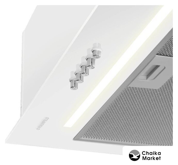 конструкция скрытая, монтаж для встраивания, ширина 58.9 см, управление сенсорное/жестами, производительность мотора 1050 м³/ч, цвет белый