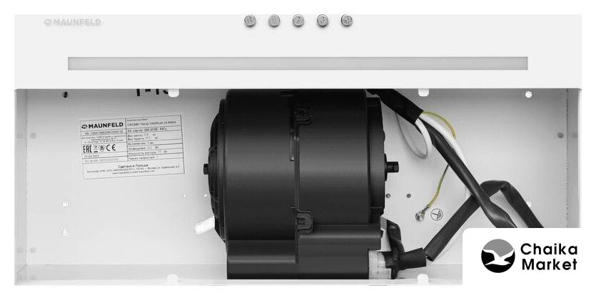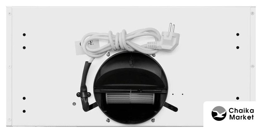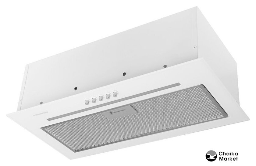 конструкция скрытая, монтаж для встраивания, ширина 59.8 см, управление электронное, производительность мотора 750 м³/ч, цвет белый