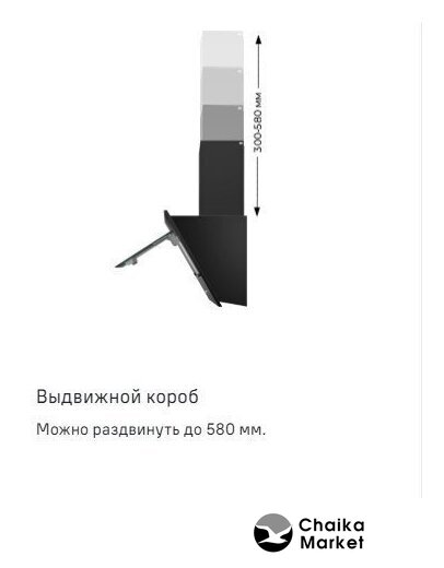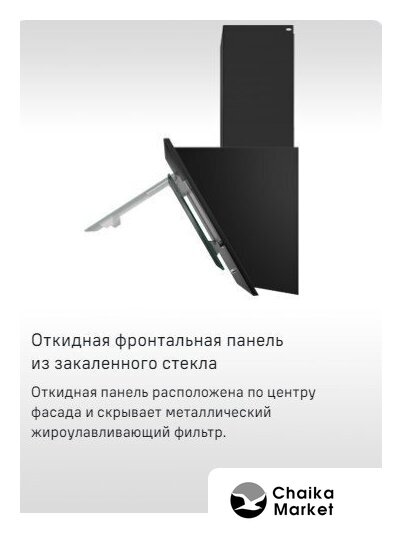 конструкция наклонная, монтаж настенный, ширина 60 см, управление механическое/кнопочное, производительность мотора 700 м³/ч, цвет черный