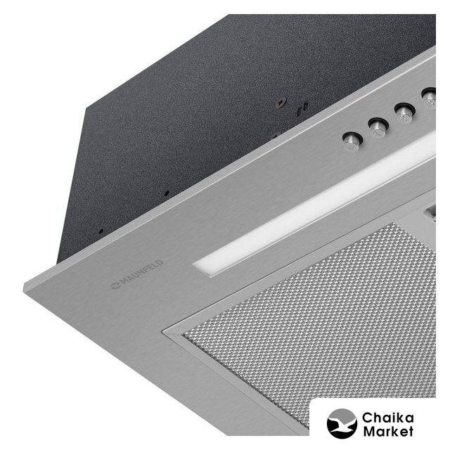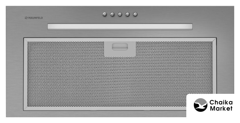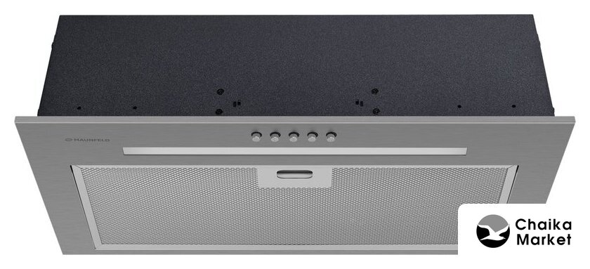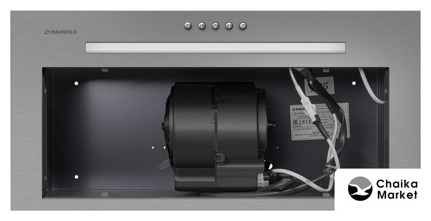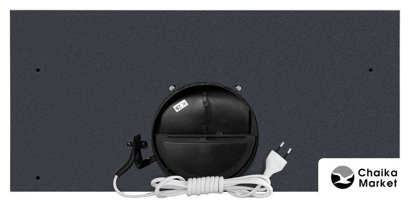 конструкция скрытая, монтаж для встраивания, ширина 49.8 см, управление механическое/кнопочное, производительность мотора 850 м³/ч, цвет черный