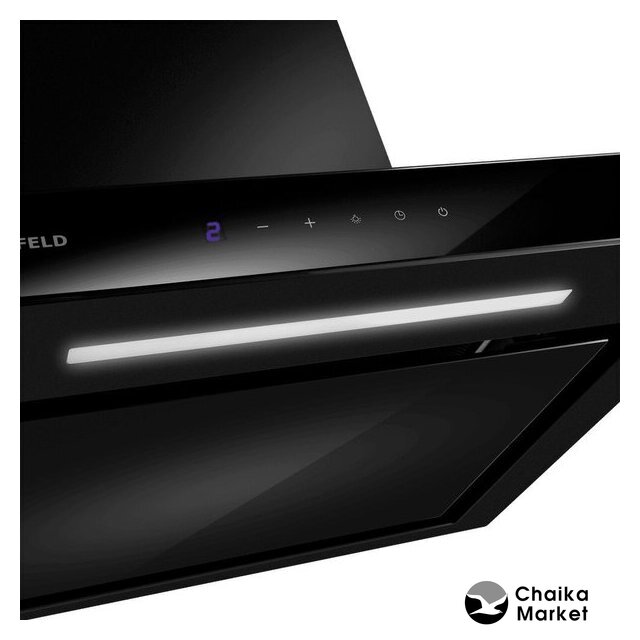 конструкция наклонная, монтаж настенный, ширина 60 см, управление сенсорное, производительность мотора 1270 м³/ч, цвет черный