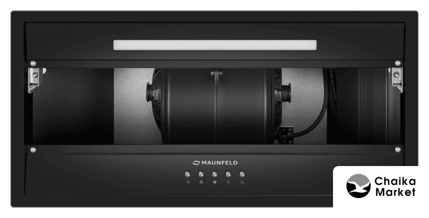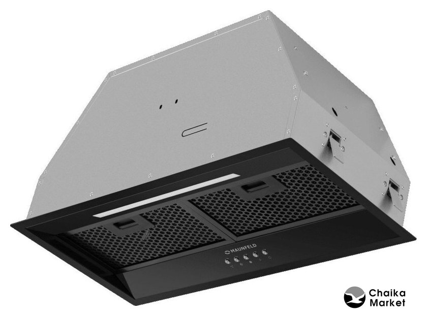 конструкция скрытая, монтаж для встраивания, ширина 55 см, управление механическое/кнопочное, производительность мотора 1000 м³/ч, цвет белый