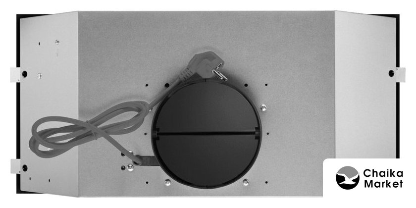 конструкция скрытая, монтаж для встраивания, ширина 59.8 см, управление механическое/кнопочное, производительность мотора 1150 м³/ч, цвет белый