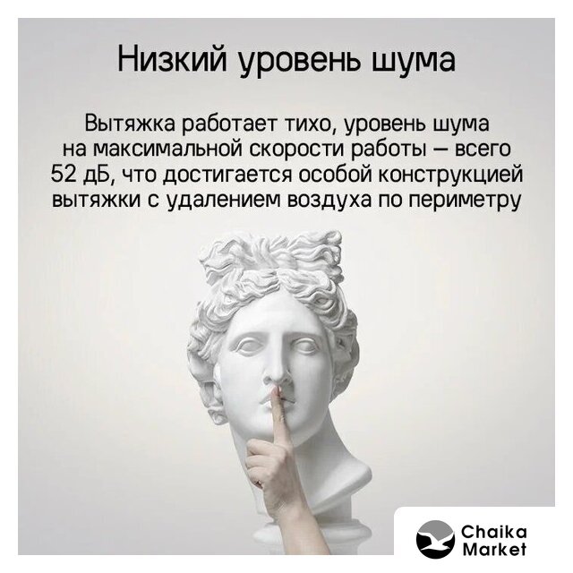 конструкция коробчатая, монтаж островной, ширина 38.2 см, управление жестами/дистанционное, производительность мотора 1270 м³/ч, цвет белый