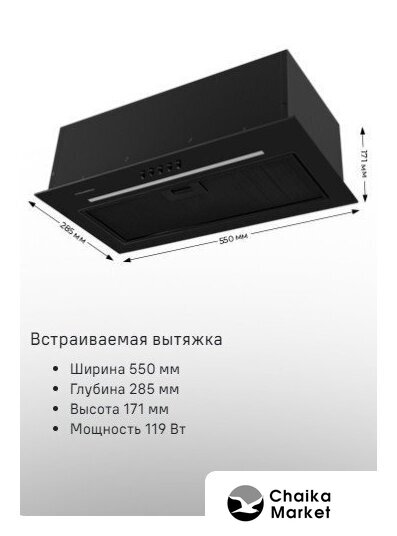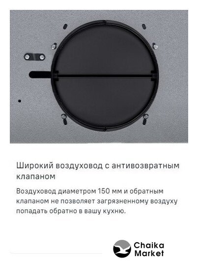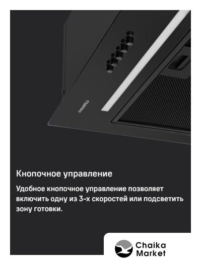 конструкция Т-образная, монтаж настенный, ширина 89.6 см, управление механическое/кнопочное, производительность мотора 650 м³/ч, цвет антрацит