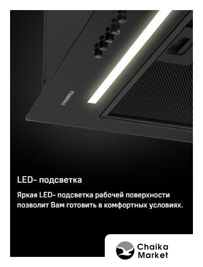 конструкция наклонная, монтаж для встраивания, ширина 59.8 см, управление сенсорное, производительность мотора 1000 м³/ч, цвет белый