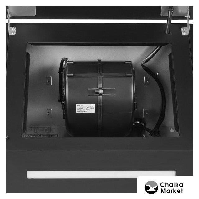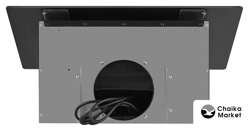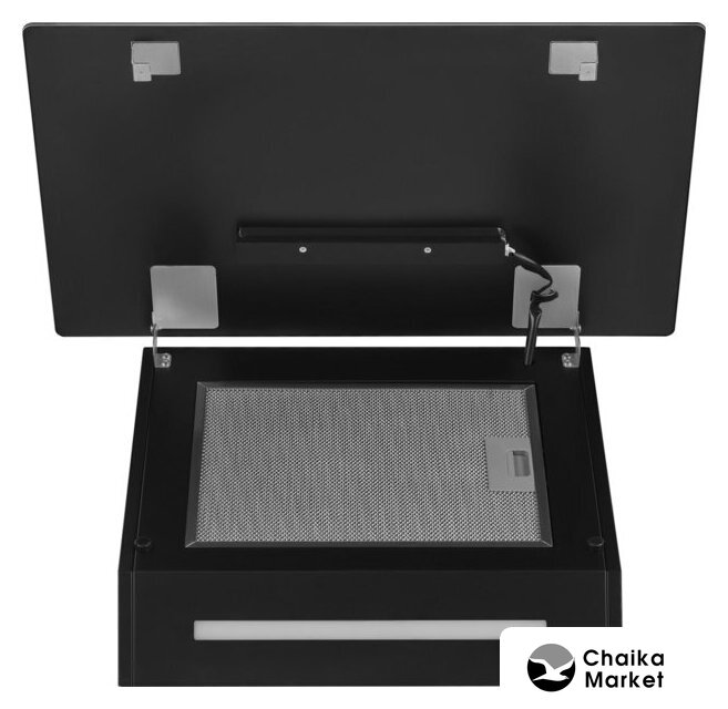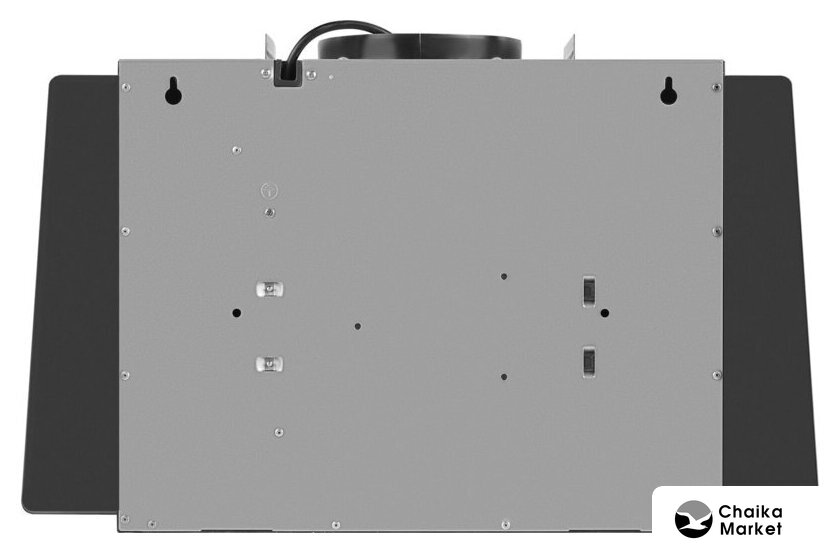 конструкция коробчатая, монтаж настенный, ширина 40 см, управление механическое/кнопочное, производительность мотора 1000 м³/ч, цвет черный
