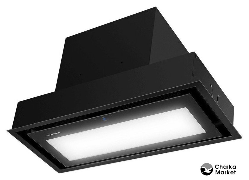 конструкция скрытая, монтаж для встраивания, ширина 60 см, управление жестами/дистанционное, производительность мотора 1250 м³/ч, цвет черный