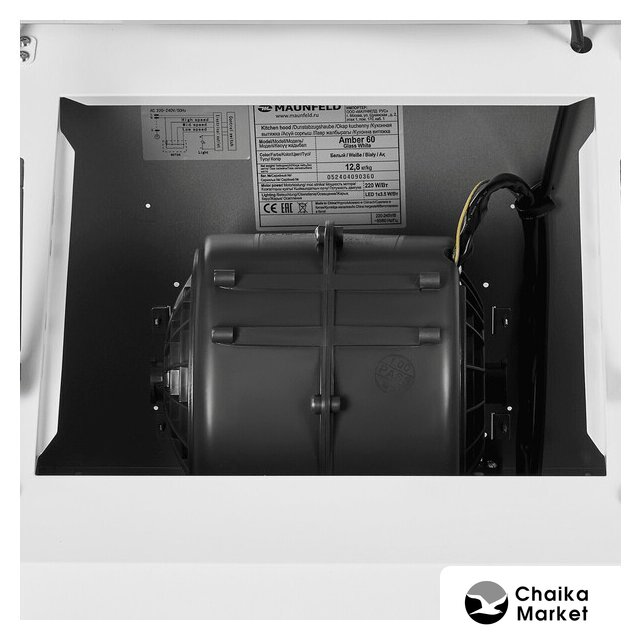 конструкция наклонная, монтаж настенный, ширина 59.5 см, управление сенсорное/жестами, производительность мотора 750 м³/ч, цвет черный
