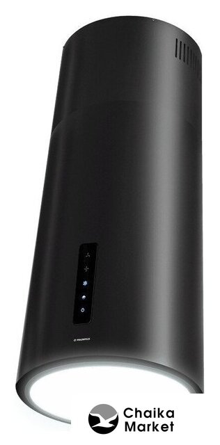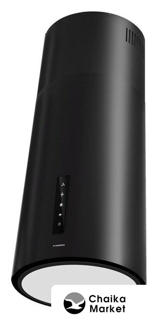 конструкция купольная, монтаж настенный, ширина 39 см, управление сенсорное, производительность мотора 1200 м³/ч, цвет черный