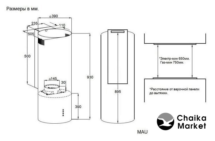 | Комплектация | вытяжка, алюминиевый фильтр, инструкция |