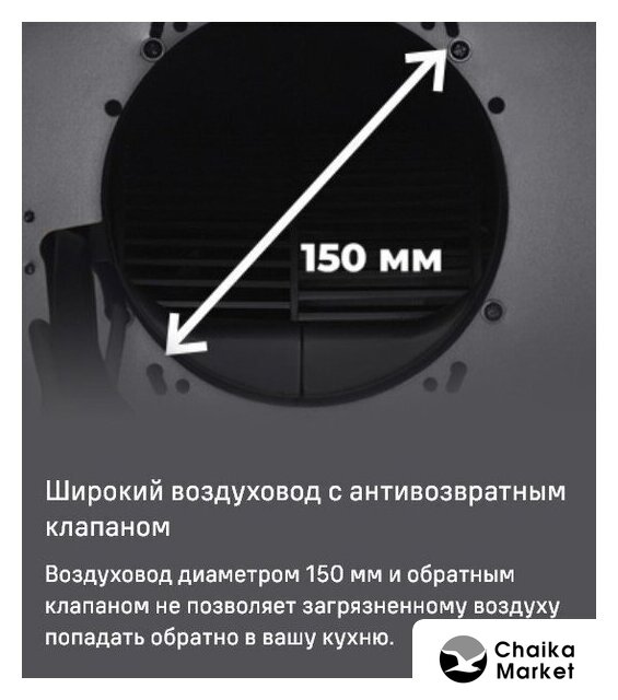 | Диаметр воздуховода | 150 мм |
