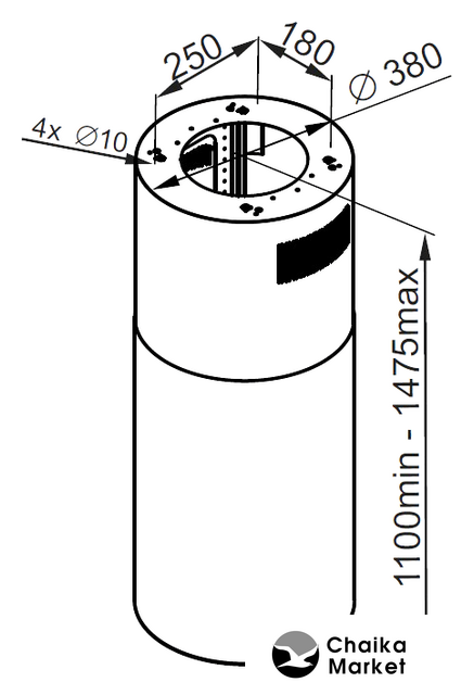 конструкция коробчатая, монтаж островной, ширина 39 см, управление сенсорное, производительность мотора 1260 м³/ч, цвет черный
