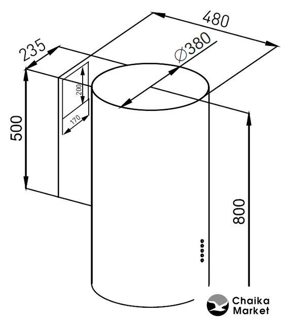 конструкция коробчатая, монтаж настенный, ширина 40 см, управление механическое/кнопочное, производительность мотора 850 м³/ч, цвет нержавеющая сталь