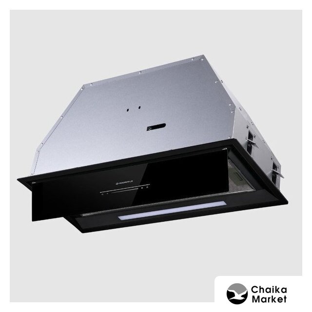 конструкция наклонная, монтаж настенный, ширина 59.5 см, управление сенсорное, производительность мотора 1150 м³/ч, цвет черный