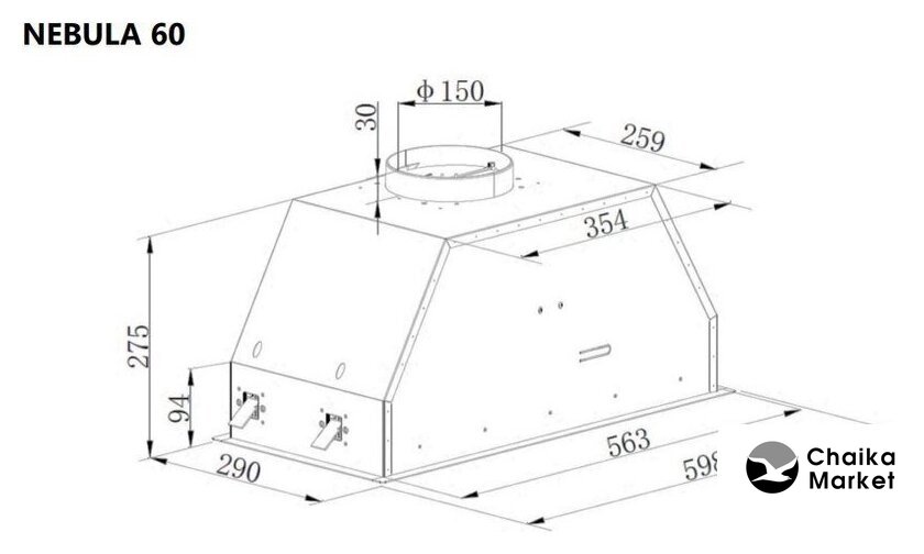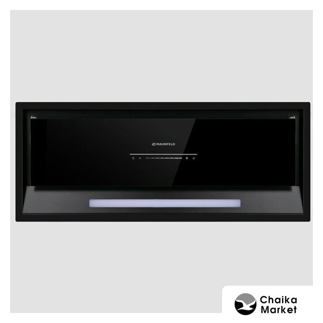 конструкция коробчатая, монтаж настенный, ширина 40 см, управление механическое/кнопочное, производительность мотора 1000 м³/ч, цвет черный