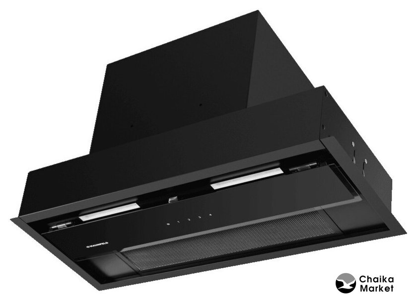 конструкция коробчатая, монтаж островной, ширина 35.2 см, управление сенсорное, производительность мотора 1050 м³/ч, цвет черный