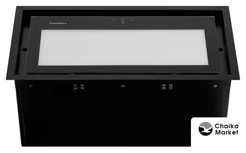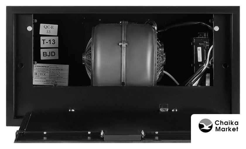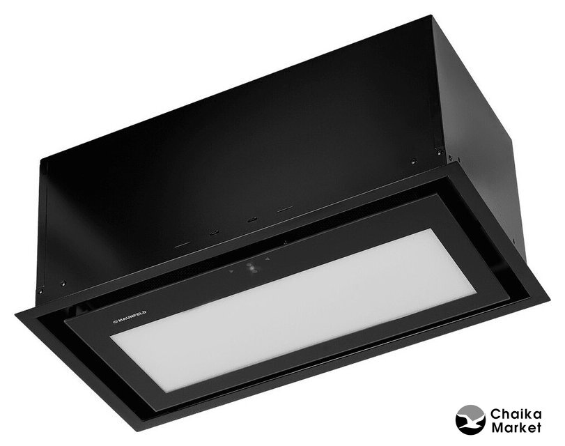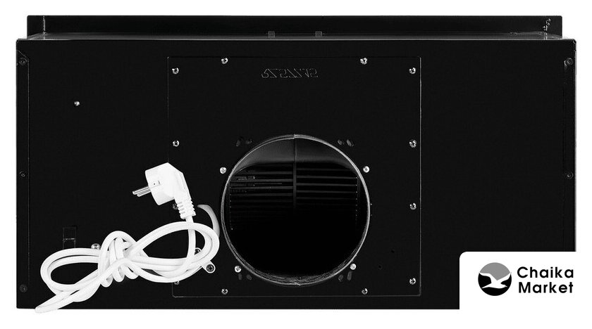 конструкция коробчатая, монтаж настенный, ширина 38 см, управление электронное/кнопочное, производительность мотора 1000 м³/ч, цвет черный