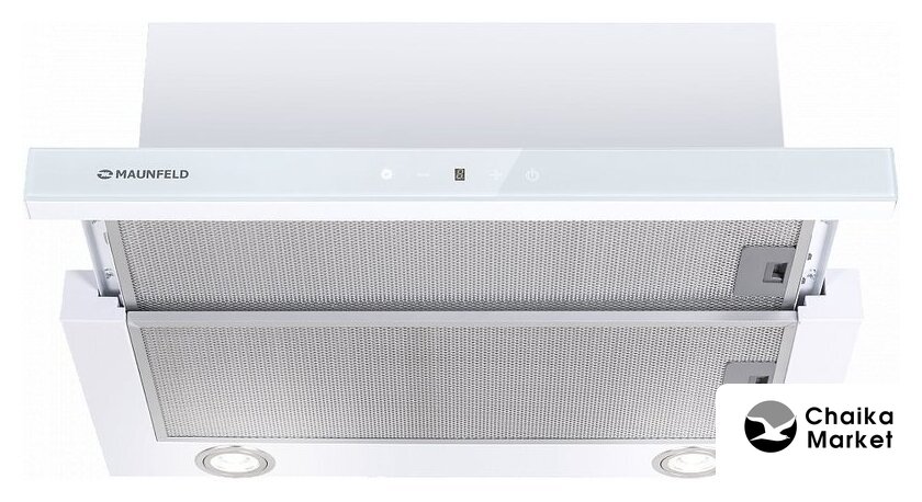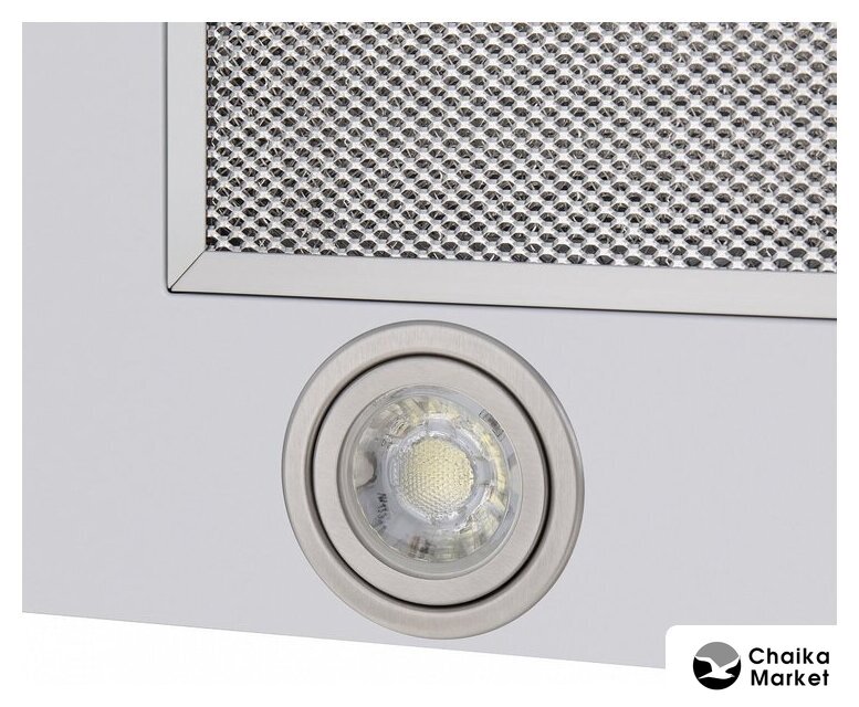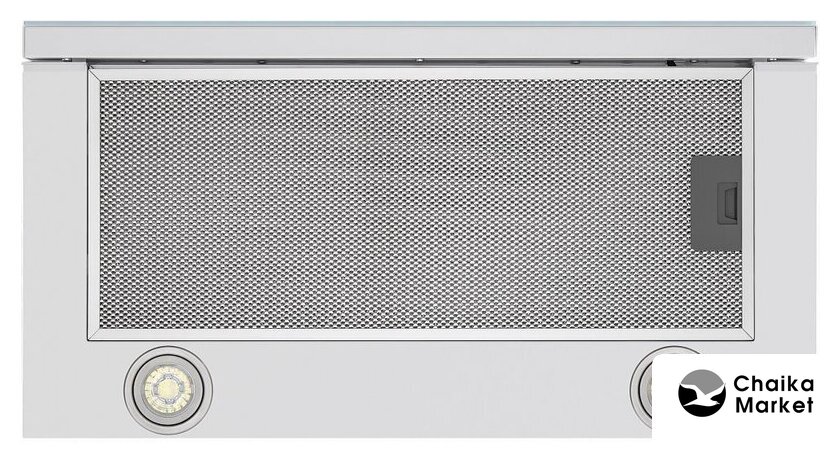 конструкция скрытая, монтаж для встраивания, ширина 52 см, управление механическое/кнопочное, производительность мотора 168 м³/ч, цвет серебристый