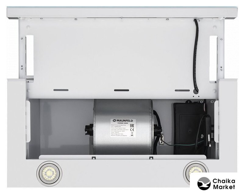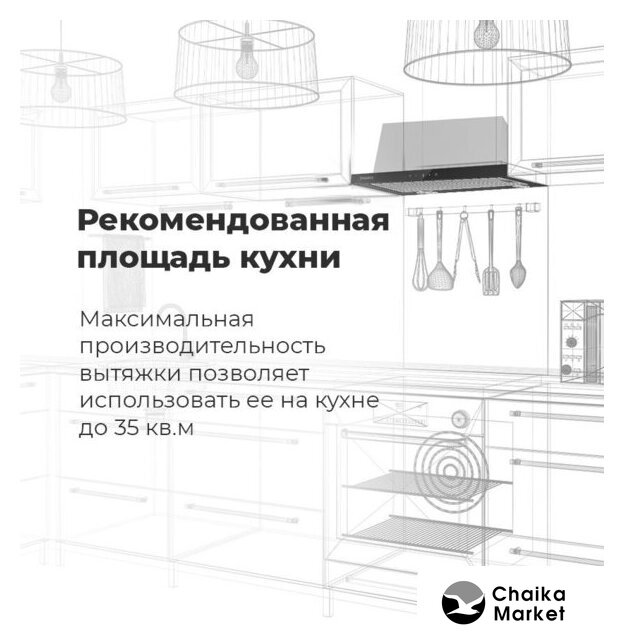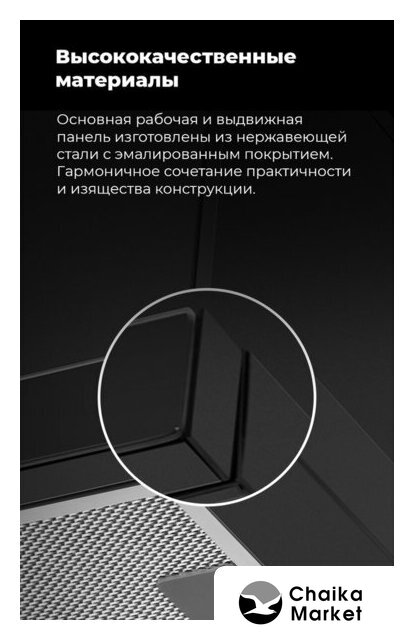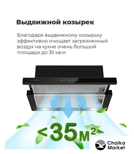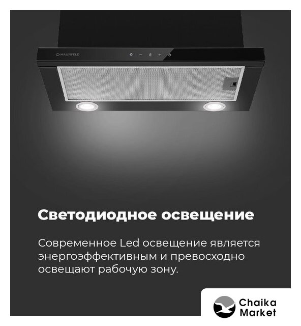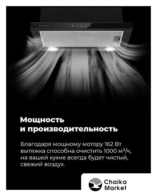 конструкция наклонная, монтаж настенный, ширина 60 см, управление электронное, производительность мотора 1050 м³/ч, цвет черный
