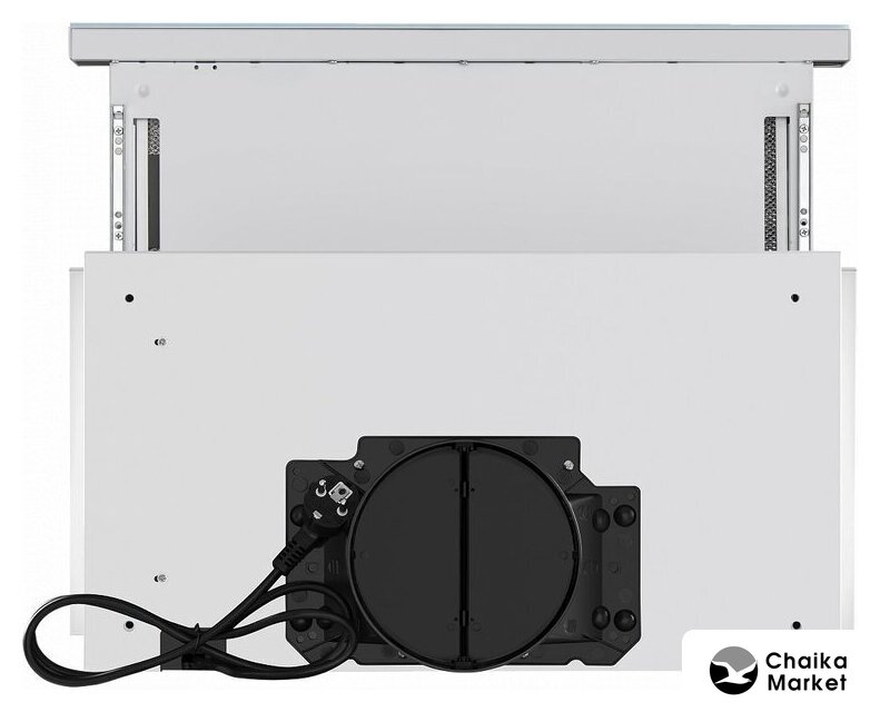 конструкция скрытая, монтаж для встраивания, ширина 60.5 см, управление механическое/кнопочное, производительность вытяжки 677 м³/ч, цвет черный