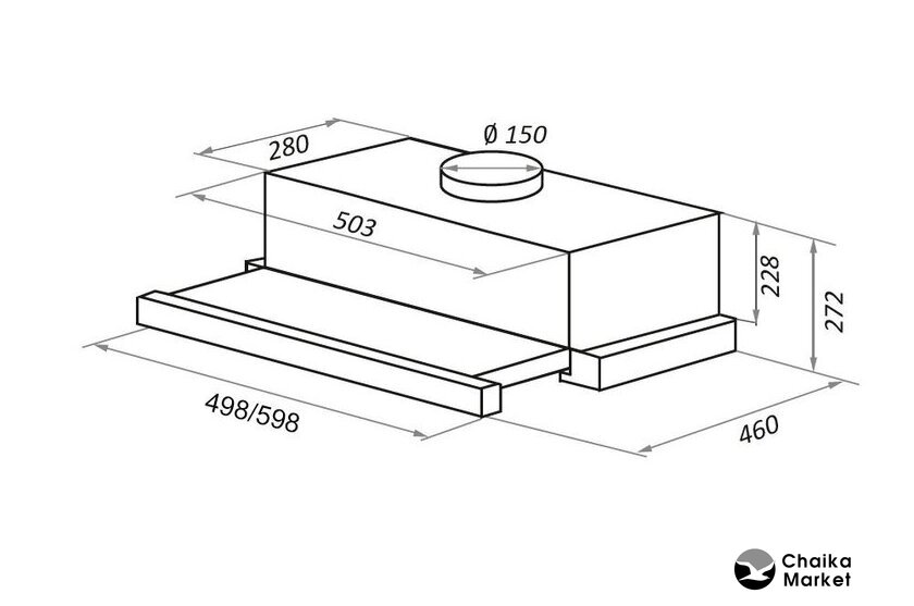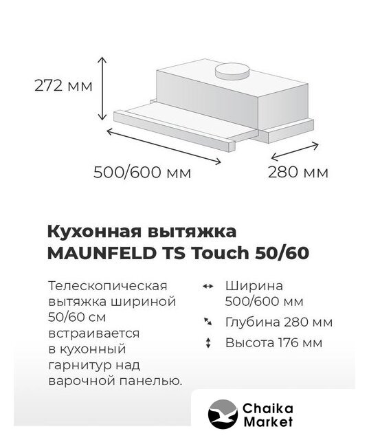 конструкция телескопическая, монтаж для встраивания, управление механическое, ширина 60 см
