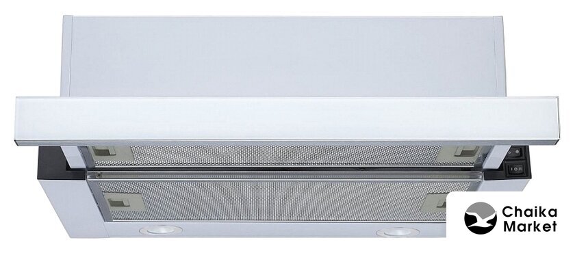 конструкция плоская, монтаж настенный, ширина 60 см, управление механическое/кнопочное, производительность мотора 520 м³/ч, цвет нержавеющая сталь