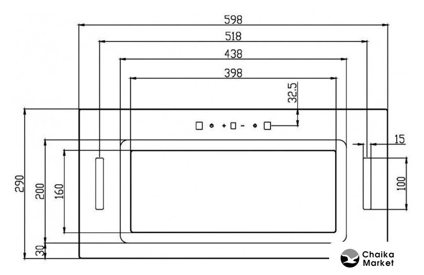 конструкция скрытая, монтаж для встраивания, ширина 59.8 см, управление механическое/кнопочное, производительность мотора 1150 м³/ч, цвет черный
