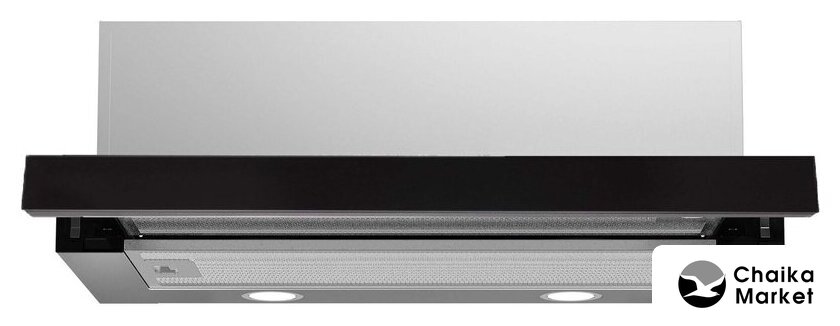 конструкция телескопическая, монтаж для встраивания, управление механическое/кнопочное, производительность мотора 400 м³/ч, ширина 60 см