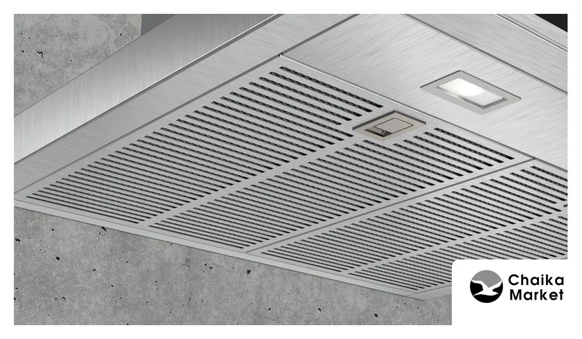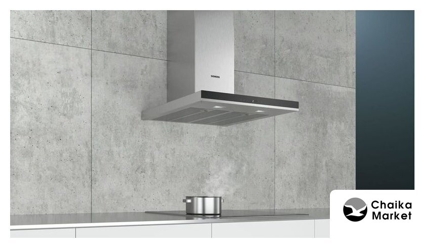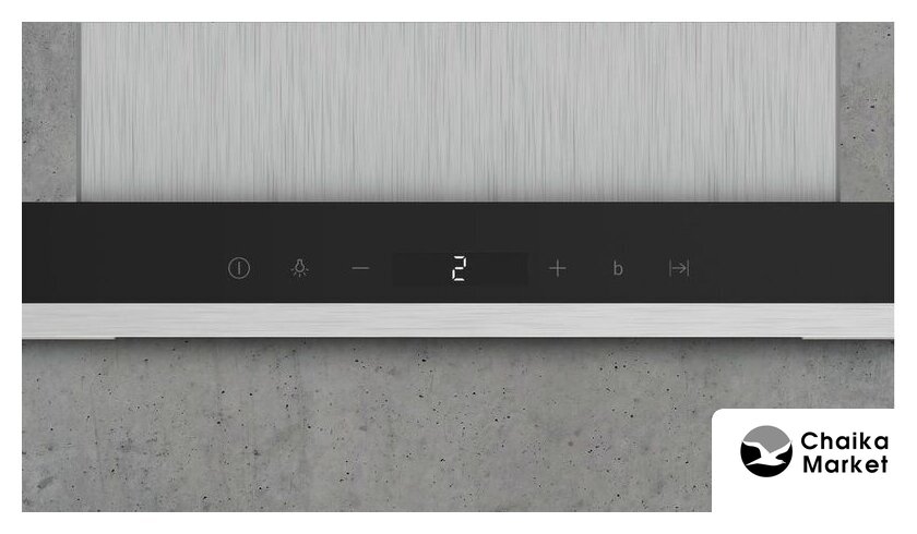конструкция Т-образная, монтаж настенный, ширина 89.8 см, управление сенсорное, производительность вытяжки 438 м³/ч, цвет нержавеющая сталь