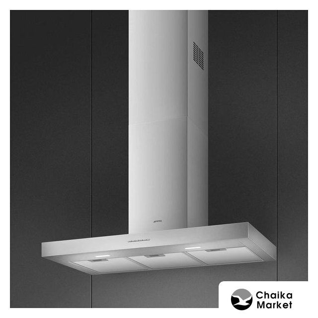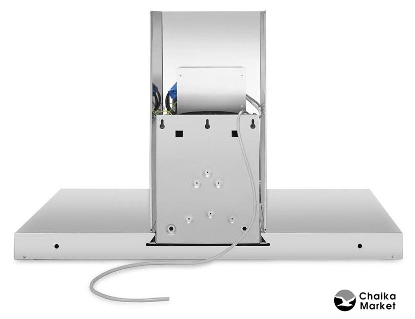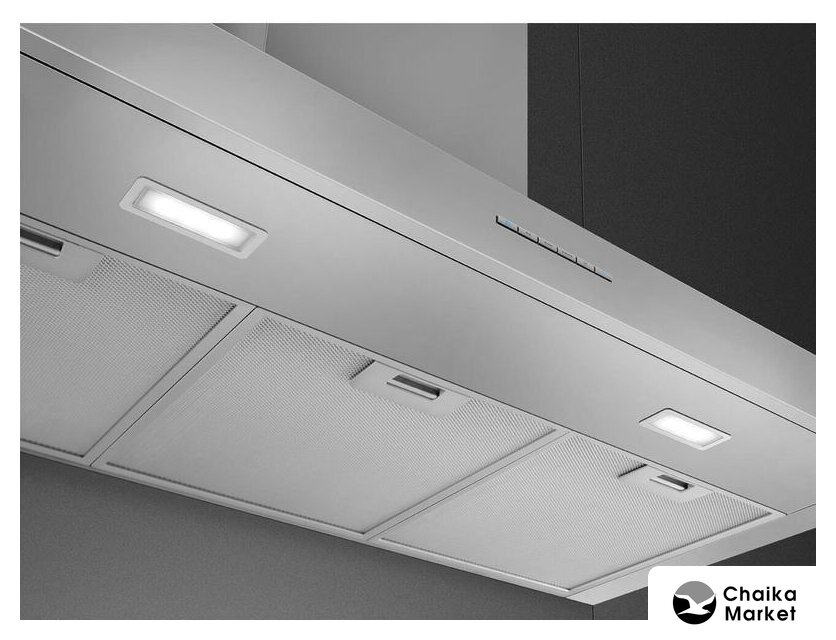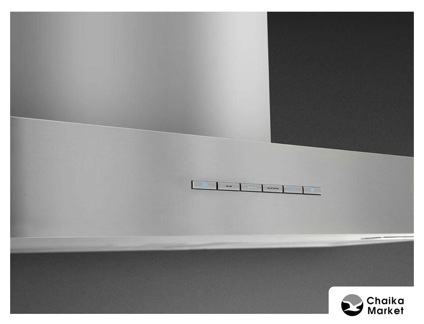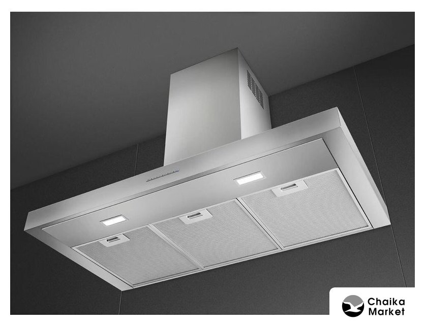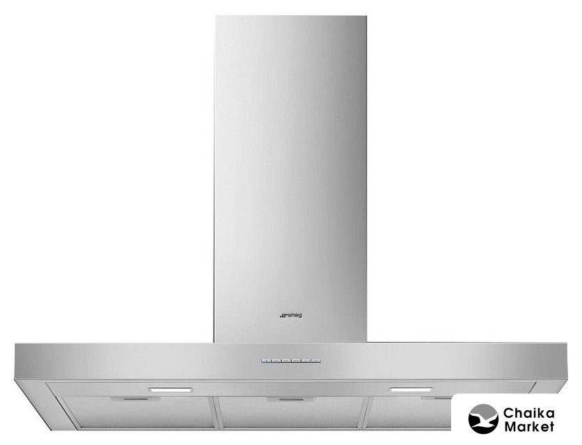 конструкция Т-образная, монтаж настенный, ширина 119.8 см, управление кнопочное, производительность вытяжки 450 м³/ч, цвет нержавеющая сталь