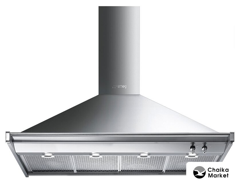 конструкция Т-образная, монтаж островной, ширина 90 см, управление сенсорное, производительность вытяжки 445 м³/ч, цвет нержавеющая сталь