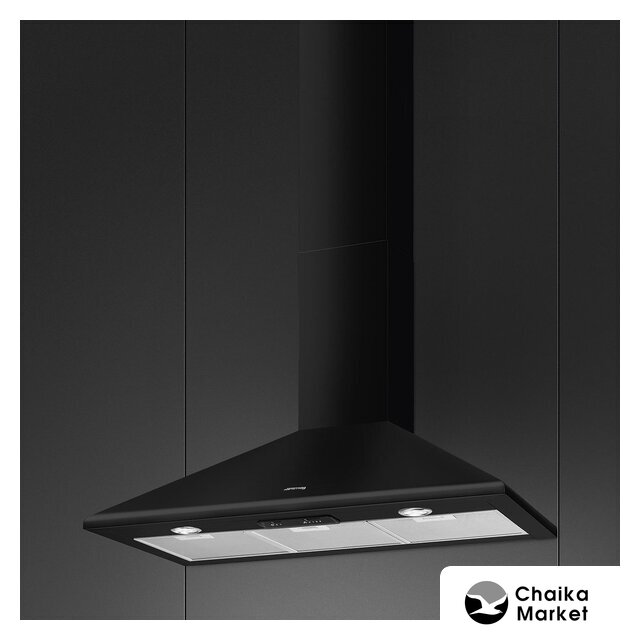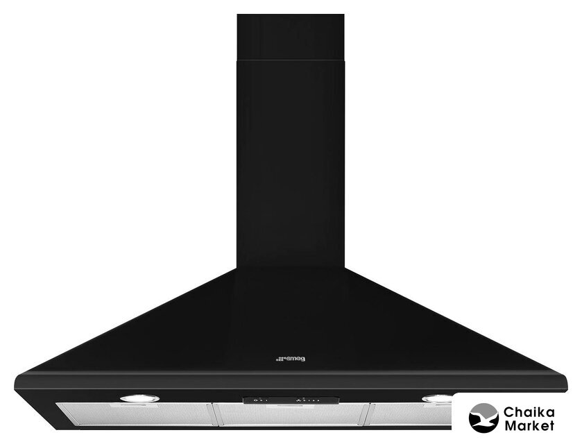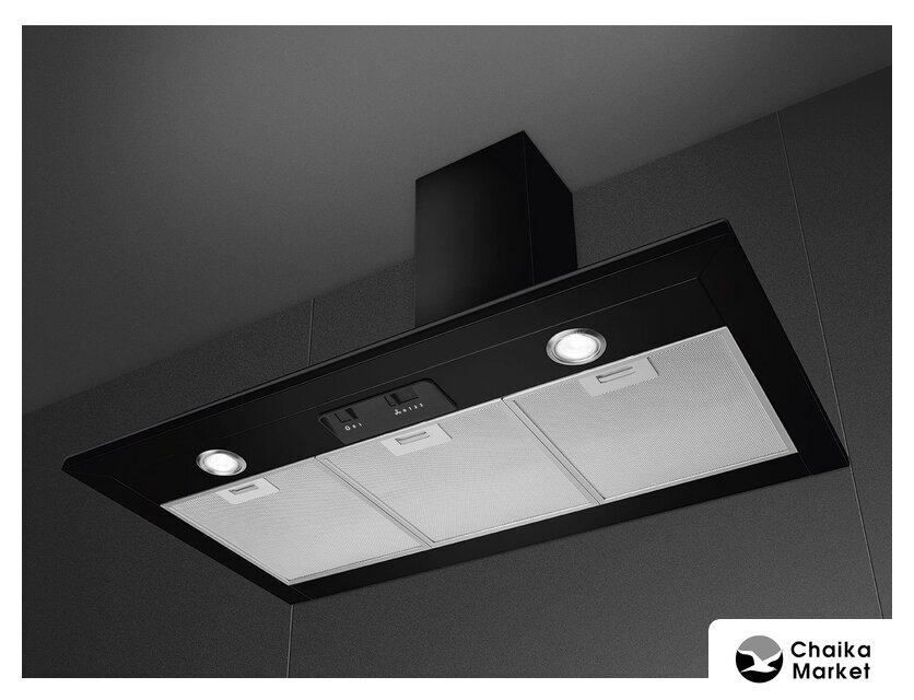 конструкция наклонная, монтаж настенный, ширина 89.5 см, управление сенсорное, производительность вытяжки 640 м³/ч, цвет черный