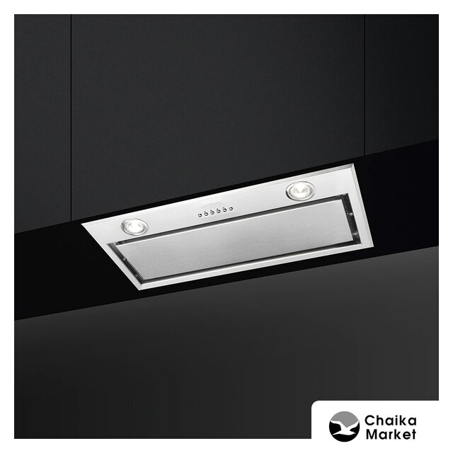 конструкция скрытая, монтаж для встраивания, ширина 90 см, управление поворотный переключатель, производительность вытяжки 650 м³/ч, цвет нержавеющая сталь