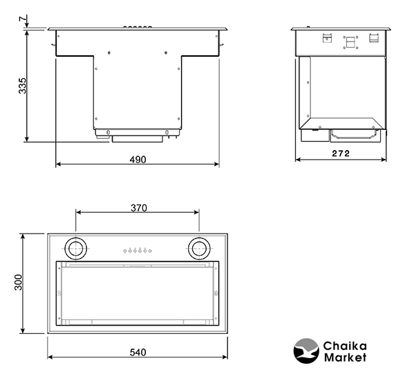 конструкция Т-образная, монтаж настенный, ширина 60 см, управление сенсорное, производительность вытяжки 530 м³/ч, производительность мотора 530 м³/ч, цвет черный