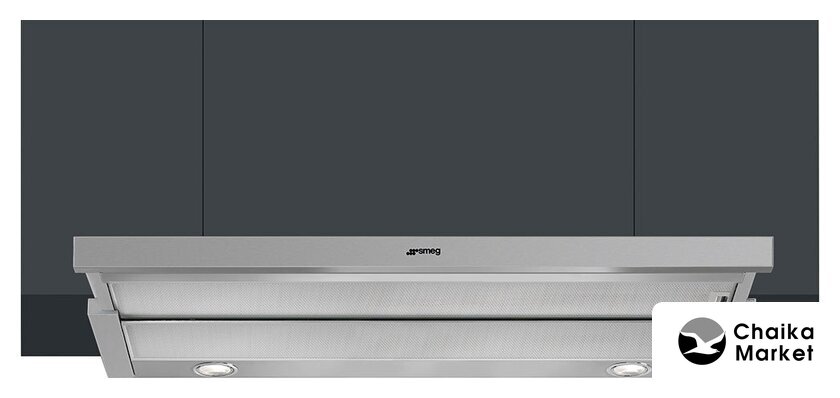 конструкция наклонная, монтаж настенный, ширина 90 см, управление сенсорное, производительность вытяжки 558 м³/ч, цвет нержавеющая сталь/серый