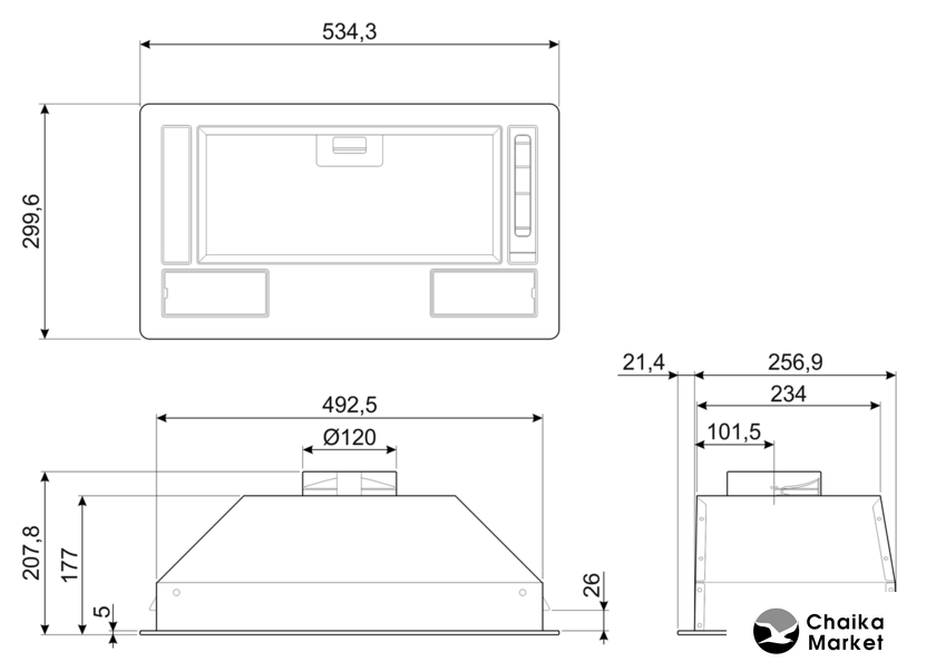 | Минимальная производительность отвода | 125 куб. м/ч |