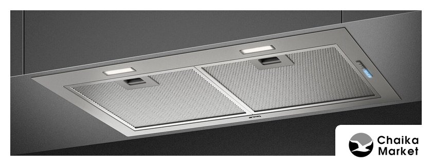 конструкция скрытая, монтаж для встраивания, ширина 52 см, управление электронное/кнопочное, производительность вытяжки 540 м³/ч, цвет нержавеющая сталь