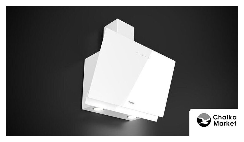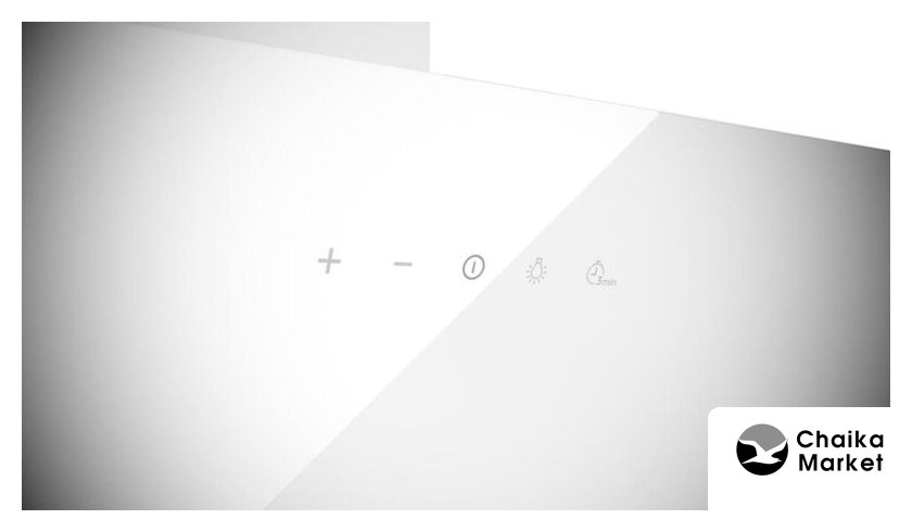 конструкция наклонная, монтаж настенный, ширина 89.5 см, управление сенсорное, производительность вытяжки 580 м³/ч, цвет белый