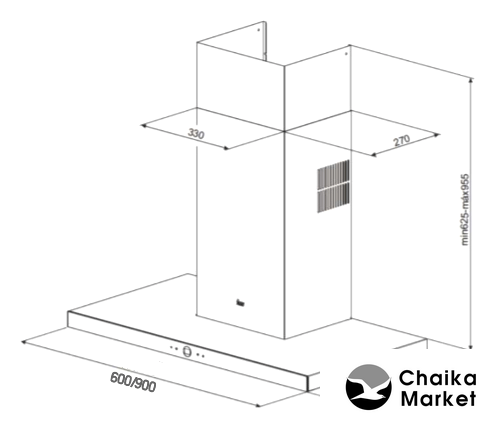 конструкция наклонная, монтаж настенный, ширина 59.8 см, управление механическое/кнопочное, производительность вытяжки 375 м³/ч, цвет черный
