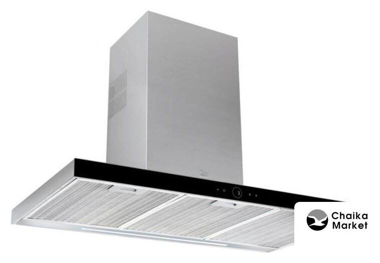 конструкция Т-образная, монтаж островной, ширина 89.7 см, управление сенсорное, производительность мотора 850 м³/ч, цвет белый/нержавеющая сталь