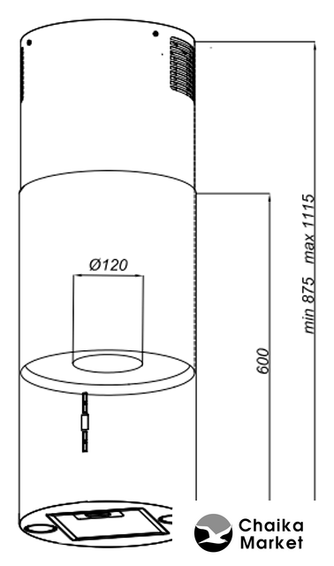 конструкция коробчатая, монтаж настенный, ширина 38 см, управление механическое/кнопочное, производительность мотора 1000 м³/ч, цвет нержавеющая сталь