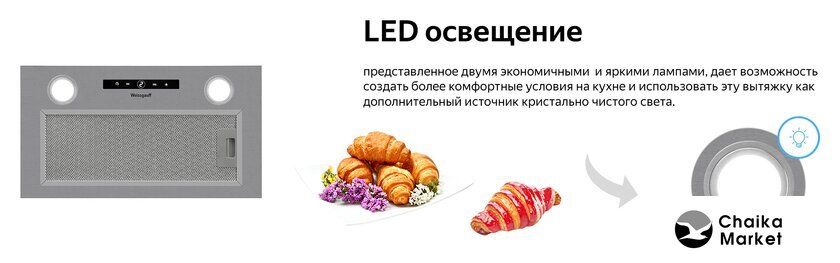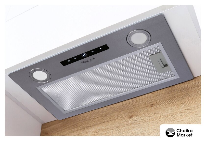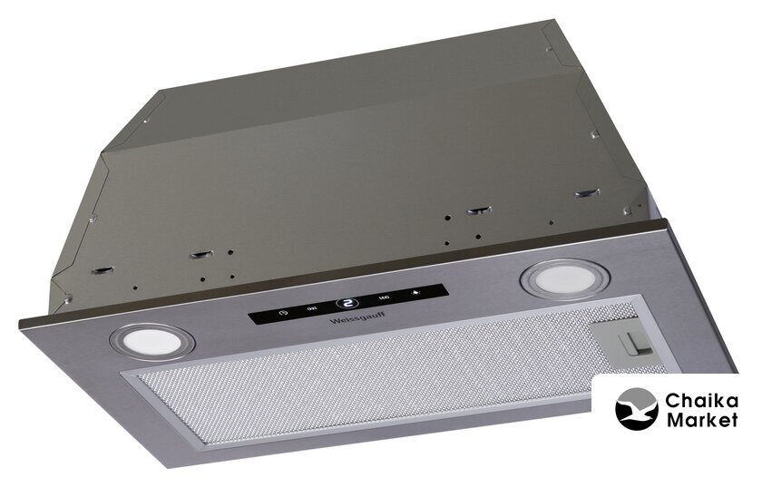 конструкция скрытая, монтаж для встраивания, ширина 59.8 см, управление поворотный переключатель, производительность мотора 850 м³/ч, цвет белый